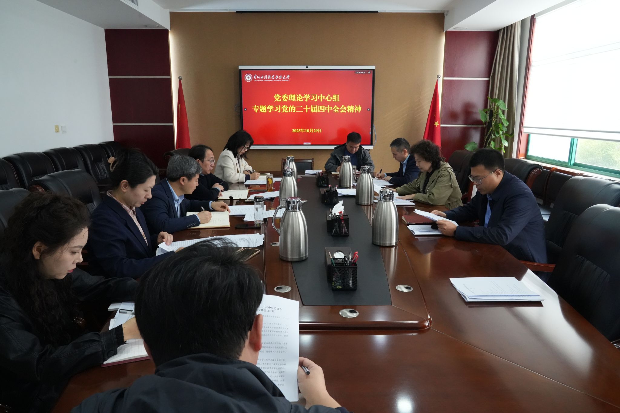 10月29日,我校在行政楼第二会议室召开党委理论学习中心组学习会,专题学习党的二十届四中全会精神,部署贯彻落实工作。党委理论学习中心组成员参加会议。会议由党委书记周保平主持。