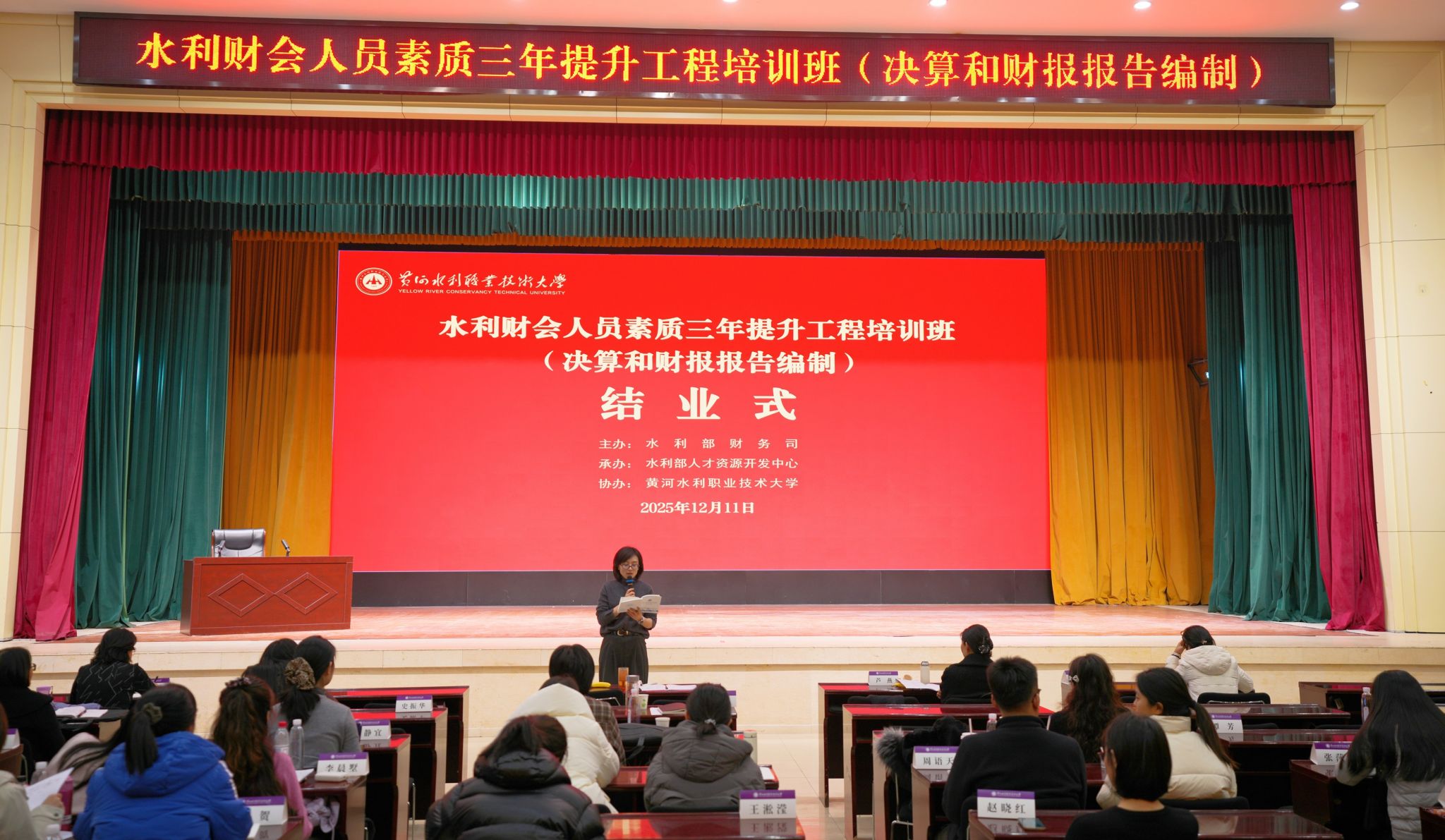 1211日,水利部财会人员素质三年提升工程培训班在我校圆满结班,水利部直属各单位财务部门负责同志及相关业务骨干100人参加培训。