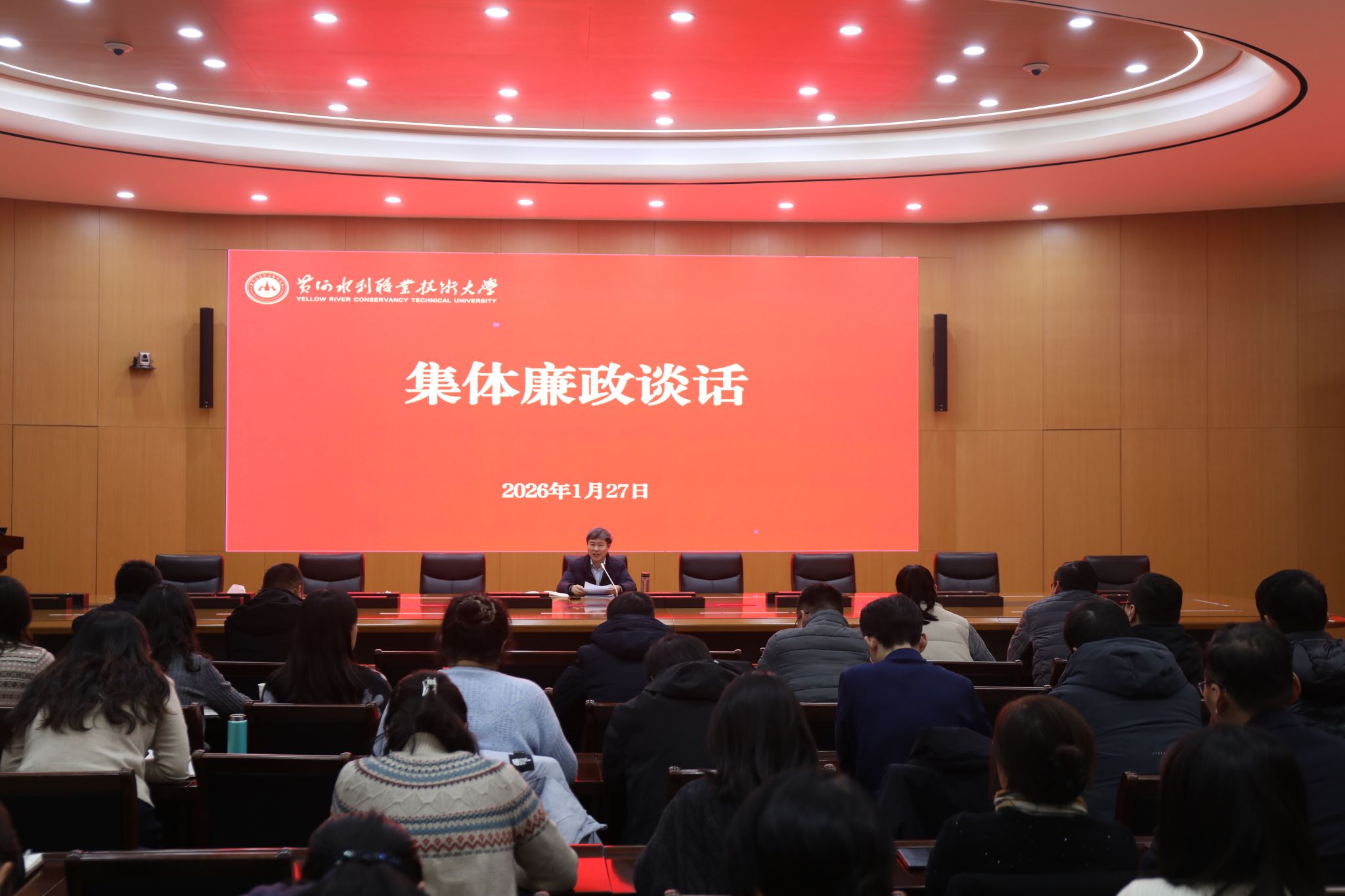 1月27日,我校在行政楼第五会议室召开纪律作风建设专题会议,深入学习领会二十届中央纪委五次全会和十一届省纪委六次全会精神,贯彻落实省委、省纪委关于持续深化中央八项规定精神,坚决整治违规吃喝问题的最新部署与工作要求。全体校领导出席会议,全体中层干部参加会议。会议由党委副书记、工会主席杨士恒主持。