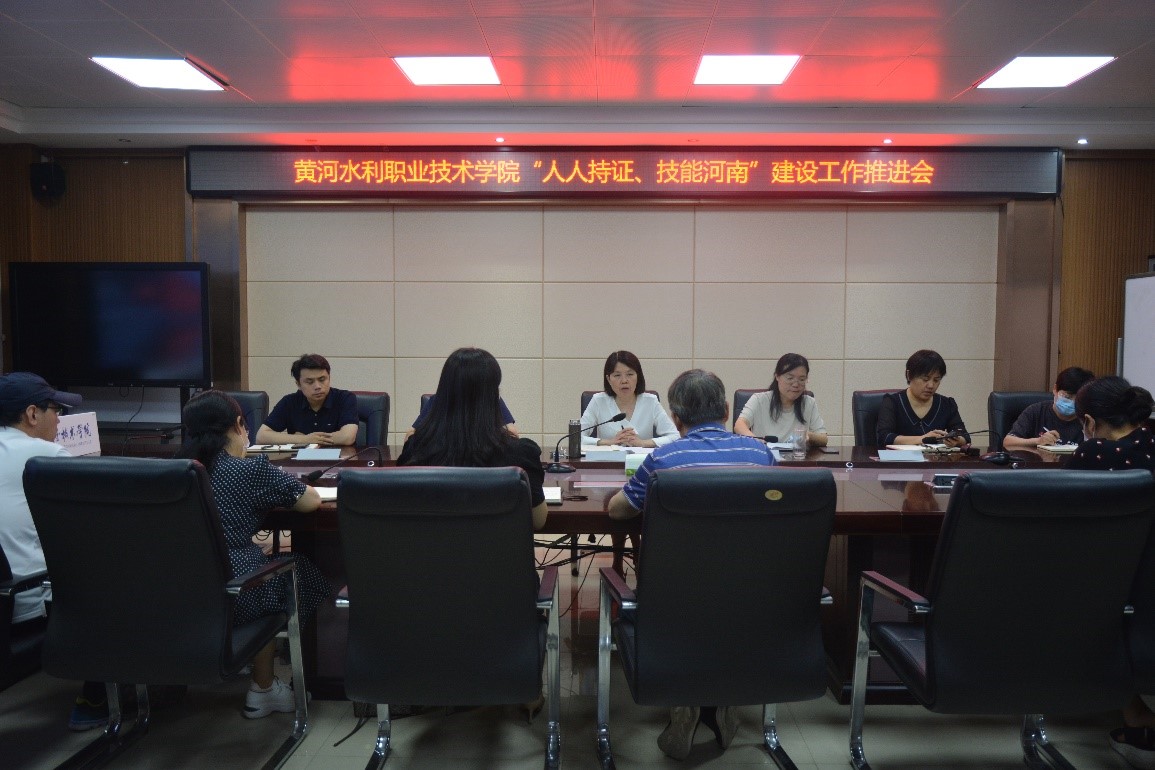 为贯彻省委、省政府《高质量推进“人人持证、技能河南”建设工作方案》,推动学校扎实开展“人人持证、技能河南”建设工作,近期,副校长焦爱萍主持召开学校“人人持证、技能河南”建设工作推进会,教务处相关领导和各技能认定分站点站长参加会议。