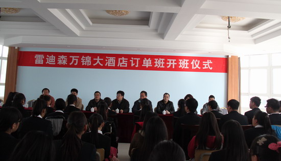 上虞雷迪森万锦大酒店总经理沈伟忠代表企业进行致辞。他说,订单班是学校与企业为学生们共同打造的学习平台和事业平台,希望入选“雷迪森万锦大酒店订单班”的各位同学以雷迪森万锦大酒店准员工和在校大学生的双重身份,严格要求自己,在校学习期间一定要成为学校一道靓丽的风景线,争取成为雷迪森万锦大酒店的正式员工和出色的优秀员工。最后,他以酒店的追求“让客户信任、让员工自豪、让股东满意、让同行尊敬、让社会赞誉、让家人幸福”为结束语,期待老师和同学们一起在雷迪森万锦大酒店订单班里努力学习、并肩作战,为自己的事业发展打下坚实基础。