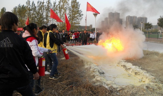 为普及消防安全知识,增强师生消防安全意识,提高应急反应、自救互救能力,11月14日,我院在学生公寓6号楼、祥云体育场西南绿地分别举行了消防疏散和灭火演练。演练共分为火场逃生和灭火演练两部分,分上、下午举行。参加演练的有各系部重点部位防火责任人、后勤服务中心工作人员、2013级新生等共计1500余人。