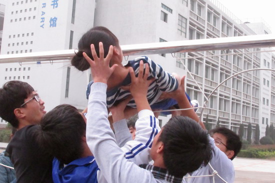 激扬青春,放飞梦想。为了丰富大学生课余文化生活,促进学生思想交流,培养合作精神,提升心理素质,11月2日上午9点至12点,由院学生处主办,院阳光心理社承办的以“激扬青春 放飞梦想”为主题的大学生心理素质拓展活动在我院青年大道举行。全院14个系各派10名代表参加了活动。