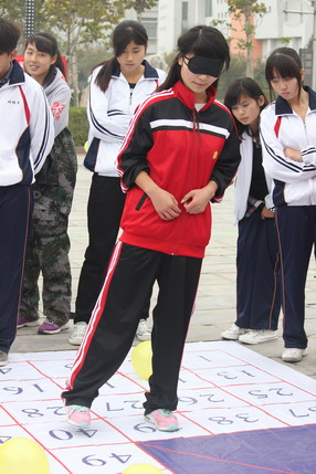 “穿越电网”是经典素质拓展活动之一,要求所有队员必须在身体不碰触电网的任何一部分的情况下,从大小不一的网孔中穿越到电网的另一边,很多同学都是第一次接触这个项目,大家抛开平日里的羞怯,开动脑筋,积极为团队献计献策,共同制定穿越攻略,在规定时间内,大部分队员通过队友的帮助成功实现穿越,没有成功的队员也在赛后积极反思、总结经验。“突破雷阵”项目一方面考验队员的方向感,另一方面考验队友之间的配合,带上眼罩的队员通过旁边队友的提示穿过有障碍的雷区,取得解救队员的钥匙,参加该项目的各位同学积极配合,认真听取队友的指挥,表现出良好的团队合作精神。“球行千里”项目则最考验参赛队员的配合程度,两位队员背靠背,双方步调一致才能将气球成功运送到目的地,有的队员采取前后走,有的队员采取左右行,在最短的时间内将气球运送到目的地。“十人九足”项目的运动员腿绑着腿,心连着心,齐声高喊着“一二一,一二一”,向终点奔跑。“火车快跑”项目比赛中,一个队10名队员右手搭肩膀,左手抬着前面队友的腿,步调整齐一致,形成一列快速移动的小火车。在长达3个小时的比赛中,没有任何一位队员提出中途退出,真正做到不抛弃、不放弃。在遇到失败时参赛队员也不气馁,互相鼓励,共同喊出系代表队的队名和口号,呐喊出属于当代大学生的青春和热情。