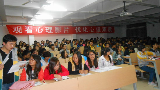 10月24日晚,在JX2502教室举行心理电影赏析活动。在院阳光心理社的宣传和组织下,学生们积极参加,共同欣赏心理电影的代表作品——《美丽心灵》。电影主人公纳什一生的传奇经历说明一个人的成功和智商有关,但是更多的要靠后天的努力和拼搏。看完影片后,大家都表示触动很大,不但深深感受到心理学的魅力和作用,更是理解了心理学工作者的梦想:帮助人们培养积极心态,理解包容周围的人,并鼓励每个人为心中的梦想拼搏奋斗,做到牵手心灵,放飞梦想!