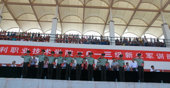 飒飒军姿展风采,猎猎军旗振校威。9月18日上午,我院2013级新生军训阅兵式在祥云体育场隆重举行,驻洛某部队首长及我院领导张惠贞、刘国际、茹正波、刘紫婷、张豫东、刘卫锋等出席阅兵式,全院各系部、相关部门负责人参加检阅。阅兵式由党政办副主任李响主持。
