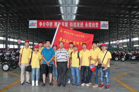 6月30日,队员们身着黄色队服,高举社会实践小分队旗帜到达偃师,开始了紧张有序的实践活动。为继承革命优良传统,弘扬爱国主义精神,实践小分队成员先后参观了偃师市烈士陵园和杨窑村八路军豫西抗日旧址,并邀请抗日老红军讲述了当年的抗日英雄故事。为了实际掌握公司企业的用人需求,实践团队来到了偃师市摩托工业园区,深入生产车间进行调研,先后考察了大阳摩托有限公司和长江摩托有限公司。在企业负责人的实地介绍下,成员们了解了摩托车的生产装配流程,并就企业建设、员工待遇、管理模式和人才需求等方面与企业负责人进行了深入探讨。