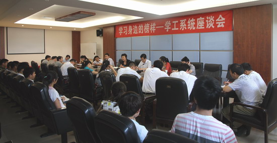 6月8日下午,我院召开“学习身边的榜样——学工系统座谈会”,院党委书记张惠贞、党委副书记刘卫锋出席会议,部分系分管学生工作领导及学生处、团委负责人、各系党总支办公室主任及院学生会、大学生自律委员会学生干部代表参加会议,会议由学生处处长朱焕立主持。