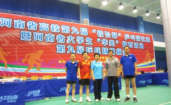 5月25日,省教育厅主办的河南省“华光”体育活动第九届“校长杯”乒乓球赛第一阶段比赛在河南城建学院顺利结束。我院领导张惠贞、王卫东、杨士恒、刘卫锋、王俊参加比赛,通过努力拼搏,以小组第二名顺利晋级16强。