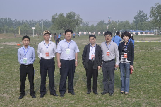 院领导刘国际、王卫东视察比赛现场时与裁判长等合影