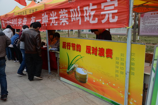 为深入贯彻落实习近平总书记关于“厉行节约,反对铺张浪费”的重要批示精神,在全院师生中倡导“节约粮食,文明用餐”的良好风尚,院后勤服务中心联合学生处于3月29日在全院师生中发起了“拒绝舌尖上的浪费,厉行节俭,文明用餐”的大型签名宣传教育活动。