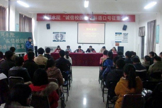 3月26日下午,我院在实训楼8408举行“诚信校园行”主题教育标语口号征集大赛的决赛。决赛由院学生处主办、管理系承办,学生处副处长刘许亮、管理系总支办主任徐猛和管理系文秘教研室常悦、胡艳娜等老师担任比赛评委。
