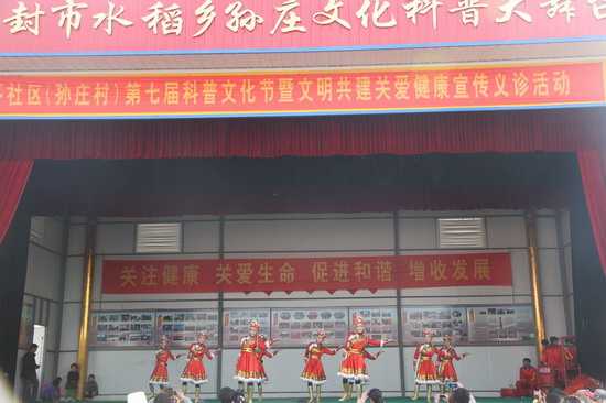 在贯彻落实党的十八大精神的开局之年,本次富平社区(孙庄村)第七届科普文化节暨文明共建关爱健康义诊活动日,以“关注健康 关爱生命 促进和谐 增收发展”为主题,在丰富群众文化生活的基础上,更加注重群众幸福安康和谐生活的建设。我院助演的舞蹈《套马杆》,伴随奔放动听的旋律,我院学生演员以其轻盈优美的舞姿,生动表现了人们昂扬向上的精神面貌,反映了人们对美好生活的向往,赢得观众热烈的掌声。演出结束,不少群众还热情邀请我院大学生有时间能来教她们跳舞。文化节上,群众自编自演的盘鼓、舞蹈、舞狮等节目精彩纷呈,来自开封市第一人民医院、开封市第二中医院的专家义诊团队也为社区群众开展了义诊活动。