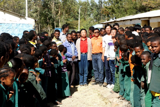 1月4日,我院援建埃塞风电项目测量队一行8人来到测区内的Tede小学,向该校捐赠了足球和纸、笔等文体用品,并与小学师生合影留念。