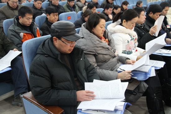 代表们认真听取四个工作报告