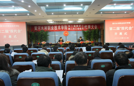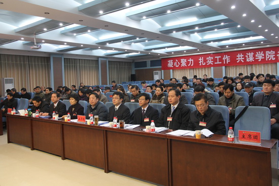 12月28日上午9:00,在雄壮的国歌声中,第二届教职工代表大会暨第二次工会会员代表大会在学术报告厅隆重开幕。包括学院领导班子全体成员在内的80名正式代表、30名特邀代表和列席代表出席大会。会议由党委书记张惠贞主持。