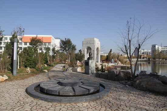 “足迹”校园文化景观项目自2010年起开始设计建造,通过黄河水院赋、涌泉石录、思源小径、国立门、名人塑像、足迹印迹、铭志塔碑等景点,集中展示了我院自1929年创建起八十余年的辉煌发展历程,反映了学院一脉相承的优良办学传统、鲜明的职业教育办学特色和科学的办学理念,是我院人文环境建设的重要成果。