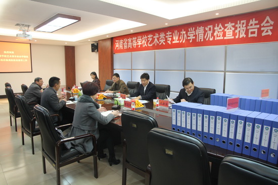 汇报会前,我院党委书记张惠贞亲切会见了专家组一行,并进行了热情的交流。检查工作结束后,专家组到开封市博物馆参观了《回眸2012黄河水院艺术系美术作品展》,对作品展给予了高度评价。(撰稿:教务处 李伟娟)