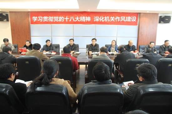 下午,机关党总支在院行政楼第二会议室开展了“学习贯彻党的十八大精神,深化机关作风建设”的集体学习活动。党委副书记刘卫锋出席了学习活动并做重要讲话,党委宣传部部长、机关党总支副书记于兆国领学了党的十八大精神。机关各部门中层干部及全体党员、群众参加了学习活动,活动由党委组织部、宣传部共同主办,宣传部副部长姚芬主持。