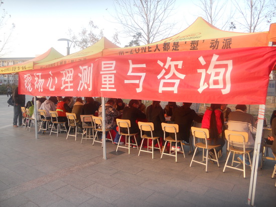 11月13日,心理咨询中心在扬帆大道安排了现场心理咨询与心理测试,要求咨询或测验的学生络绎不绝。心理咨询中心的倪凤琨老师和机电系的曹林英老师在现场热心耐心地为学生做心理咨询。