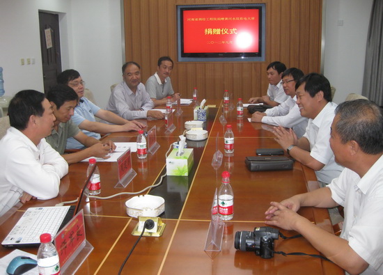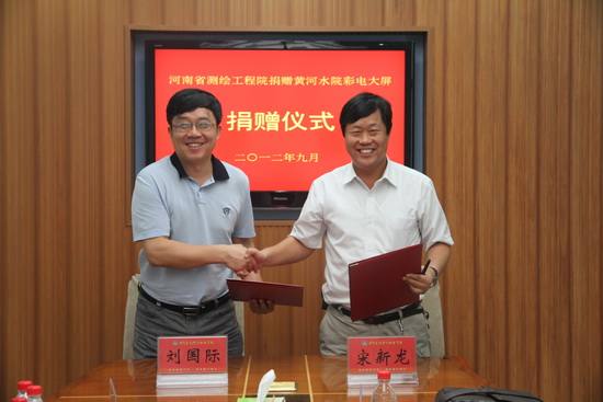 刘国际院长对近几年我院测绘工程系与河南省测绘工程院的深度合作表示赞赏,并希望提升校企合作层次,构筑更加广阔的合作平台。河南省测绘工程院宋新龙院长对双方通过合作实现校方、企业、学生“三赢”表示肯定,对“厂中校、校中厂”的灵活教学、合作模式给予很高评价,并就下一步深入开展校企合作、工学结合谈了看法,希望进一步开创“校企抱团谋发展”的良好局面。宋新龙院长代表河南省测绘工程院向我院捐赠了价值20万元的彩色大屏幕,以示人才和技术共享之谢意。