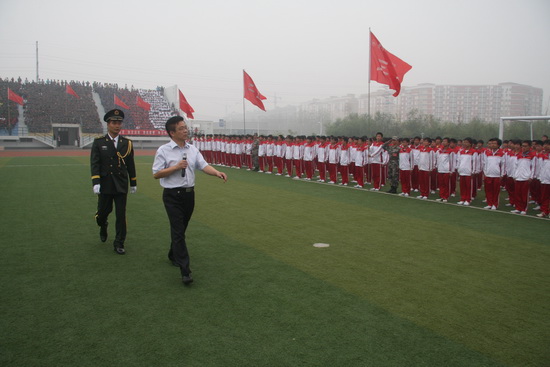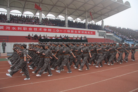 飒飒军姿展风采,猎猎军旗振校威。9月22日上午,我院2012级新生军训阅兵式在祥云体育场隆重举行,驻汴某部队首长及我院领导张惠贞、茹正波、刘紫婷、杨士恒、张豫东、刘卫锋等出席阅兵式,全院相关部门负责人参加检阅。阅兵式由党政办主任刘玉宾主持。