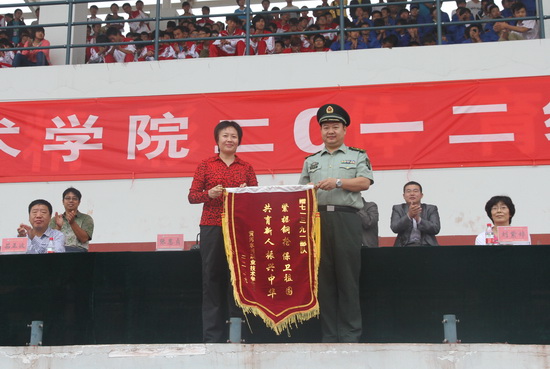 驻汴某部首长对参加阅兵各方队的表现进行了点评。张惠贞书记代表学院向驻汴某部赠送了锦旗。