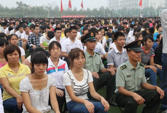 9月10日上午,艳阳高照,军旗飘飘,我院2012级新生开学典礼暨军训动员大会在祥云体育场隆重举行,院领导张惠贞、刘国际、茹正波、王卫东、刘紫婷、杨士恒、张豫东、刘卫锋及驻汴某部队首长出席动员大会。院党政办主任刘玉宾主持大会。