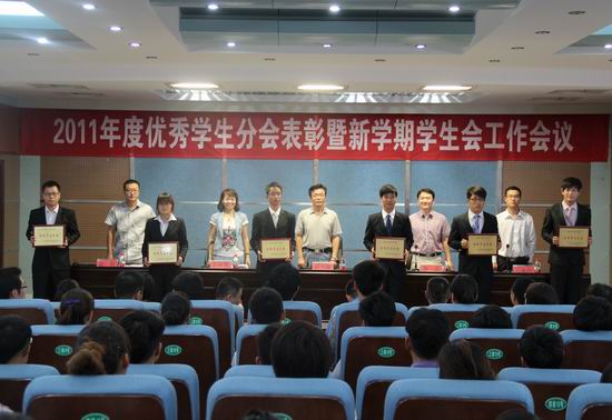 会上,团委谷献晖书记宣读了《关于表彰2011年度优秀学生分会、优秀部室和优秀个人的决定》。就全院的学生会工作,她提出“两个转变”,即从“执行工作的多”向“创新性工作的多“转变,从”管理的多”向“服务的多”转变。与会领导为受表彰的先进集体和先进个人颁发了获奖证书。院学生会主席马振阳做了学生会2011年度工作总结及新学期工作安排。