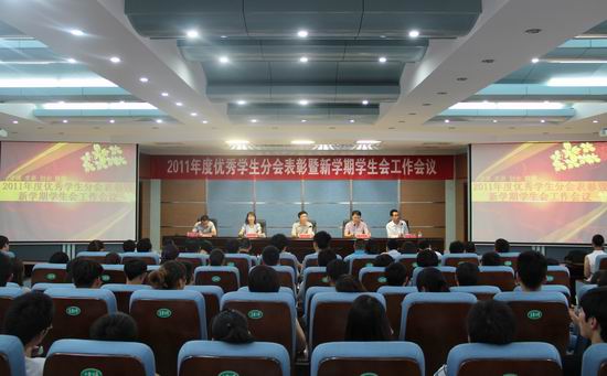 9月6日下午,我院2011年度优秀学生分会表彰大会暨新学期学生会工作会议在学术报告厅举行。院党委副书记刘卫锋出席会议,团委书记谷献晖、副书记李聪,学生处宿舍管理科柴杉及各系学生工作负责人参加了会议。会议由李聪主持。