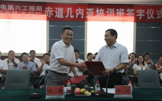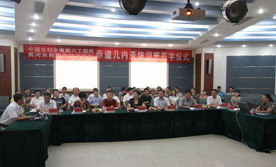 8月2日上午,在我院4号实训馆演播厅举行中国水利水电第六工程局与黄河水利职业技术学院赤道几内亚培训班协议签订仪式。水电六局副局长刘宝、人力资源部部长马云峰,我院党委书记张惠贞,副院长茹正波、刘紫婷、王俊出席签约仪式,党政办、招生就业服务中心、国有资产管理处、科研外事处、水利系、自动化系等相关部门、系部负责人参加签约仪式。签约仪式由党政办公室主任刘玉宾主持。