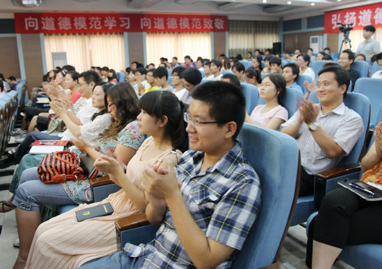 报告会上,我院刘卫锋副书记做了讲话,并对道德模范的事迹进行了点评。他说,这次报告会,为我院师生近距离感受道德模范独特的人格魅力,深入学习道德模范先进事迹提供了难得的机会。要以本次活动为契机,把学习道德模范先进事迹与加强我院精神文明建设、师德师风建设紧密结合起来,与加强和改进我院思想政治教育工作紧密结合起来,引导广大教职工勤恳敬业、乐于奉献,努力成为“四育人”的模范履行者、教师职业道德的光荣捍卫者和学院精神的忠诚守卫者。刘卫锋副书记告诉同学们,“奉献者永远最年轻,奉献者永远最美丽”,永远会受到全社会的尊重和爱戴。希望大家能够以道德模范为榜样,努力传承中华民族传统美德,践行社会主义核心价值体系,自强不息,知行合一,磨炼品格,努力成为中国特色社会主义事业的合格建设者和可靠接班人。