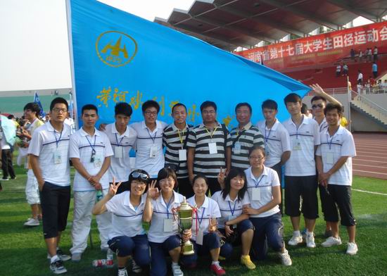 6月10—14日,由河南省教育厅主办、河南工程学院承办、河南省学生体育总会等协办的河南省大学生“华光”体育活动第十七届大学生田径运动会在河南工程学院举行,省政府副秘书长介新,大运会组委会主任、省教育厅厅长王艳玲,省体育局局长彭德胜等领导和各高校领导出席了开幕式。我院派出了以刘卫锋副书记为团长的代表队参赛,取得了较好的成绩,并获得“体育道德风尚奖”。