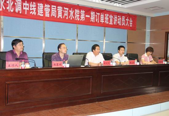 接着,曹玉升处长宣读了《南水北调中线黄河水院订单班》第一期选拔公告;会议播放了两部南水北调中线工程专题片;韩黎明处长介绍了南水北调工程运行管理情况,针对现地运行管理工作为本次选拔做出了总结性注解。