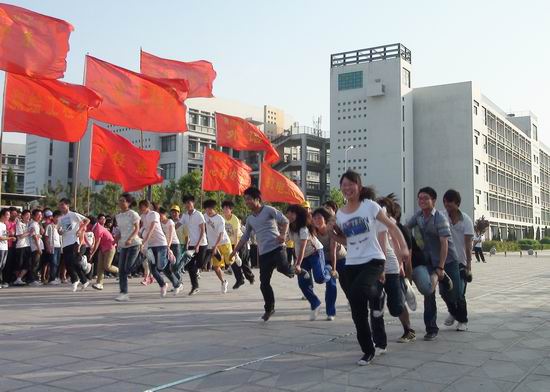 下午5时,一场别开生面的趣味心理运动会拉开了心理健康节的序幕。首先进行的是“多人多足竞速”活动,各系参赛队员六个人站成一排,要用七条腿走路比速度。比赛开始后,不论男生女生都摒弃了羞涩,相互之间攀着肩膀,很多队员齐喊着口号,争取步调一致,希望以最快的速度通过终点。随后进行的是“火车快跑”和“无敌风火轮”项目。有趣的游戏,飘扬的系旗,随风舞动的气球,洋溢着快乐的笑脸,将活动现场变成了欢乐的海洋。在活动中,同学们既放松了心情,又培养了团队合作意识和沟通协调能力。