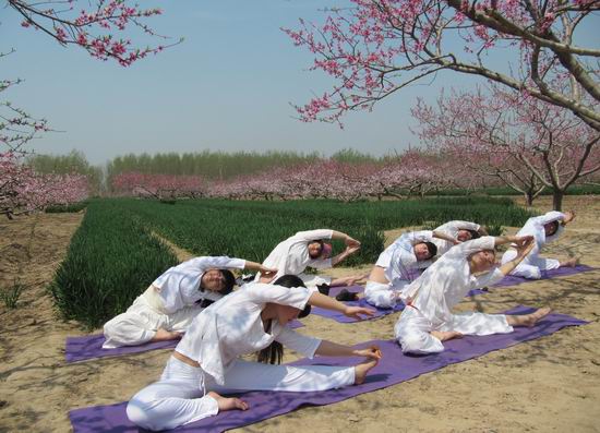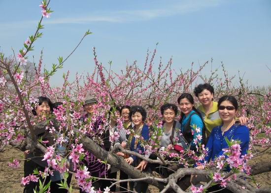 早上7:30,车辆启动,一位“导游”老师朗诵的一首 “抬头喜鹊叫,迎面美人笑。枝头春意闹,蝶与花正巧”的五言绝句充分调动了大家的情绪,笑声飞扬了一路。在缤纷的桃园里,大家忘情地观赏着,说笑着。在清新景色的感召下,素装的女教职工练起了瑜伽,为这春日的桃园增添了一份色彩,一份艳丽。一位老师触景生情吟道:“美人化蝶花间飞,百花仙子谁为魁。黄衣蝶儿枝头翠,花色蝶儿霸气吹。春色香溢惹人醉,郁气顿消开心扉。他年若随陶公愿,渴饮一瓢桃花水。”