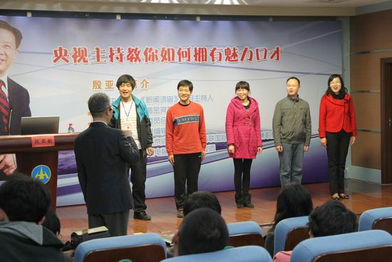 讲座中,殷亚敏先生不断运用诙谐幽默的语言和丰富生动的手势,调动着全场师生随着他进行“双人舞”的训练,现场掌声阵阵,笑声不断,使大家在轻松愉快的气氛中学会了讲话和发声的技巧。最后,殷亚敏先生和在场师生进行了互动交流,解答了部分师生关于演讲和表达的问题,分享了经验。讲座在广大师生中收到了良好的效果,一位学生兴奋的说:“殷老师的讲座给了我很大的启发,原来当众发言可以这么简单!我以后每天都要坚持说‘悄悄话’,早一点学会讲话的技巧!”