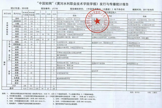 日前,我院学报编辑部收到“中国知网”2011年9月统计编制的报告,从《黄河水利职业技术学院学报》发行与传播统计报告中获悉,2010年度我院学报国内外机构用户达到4124个,相比2009年度的3707个增加417个,国际影响力又创历史新高。我院学报发表的文章具有较高的学术应用价值,读者地域分布世界各国(美、英、法、德、日等国),传播趋势持续逐年上升。