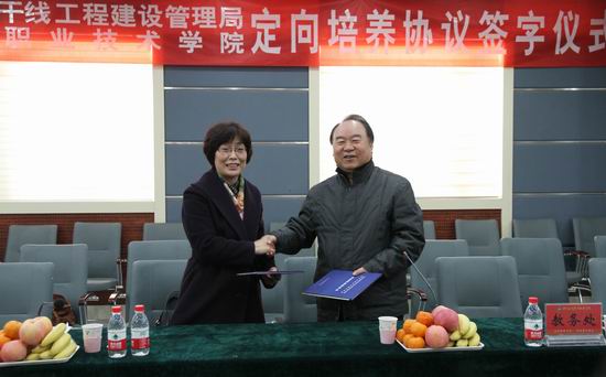 3月8日上午,我院与南水北调中线干线工程建设管理局合作培养协议签订仪式在学院演播大厅举行。南水北调中线工程建管局党组副书记韩连峰、副局长刘宪亮、人力资源部副部长肖军、人事处处长曹玉升,我院领导王卫东、副院长刘紫婷、学院有关部门负责人、部分骨干教师参加了签订仪式,仪式由副院长刘紫婷主持。
