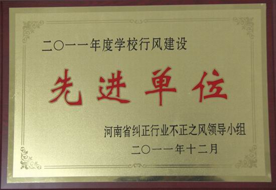 2012年初,河南省政府召开全省民主评议政风行风工作总结表彰会议,我院再次获得“学校行风建设先进单位”的荣誉称号(全省各类学校2011年不设“人民群众满意学校”荣誉),这已是我院连续第4年获得此项荣誉。