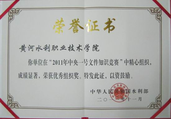 日前,水利部在京举行2011年中央1号文件知识竞赛颁奖仪式,历时半年多的2011年中央1号文件知识竞赛圆满落幕,我院获得优秀组织奖。水利部部长陈雷、副部长周英出席颁奖仪式,并为获奖单位和个人颁奖。