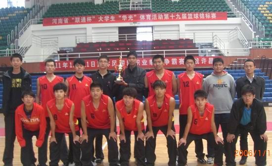 10月29日至11月3日,第十九届河南省大学生篮球锦标赛专科组比赛在许昌职业技术学院落下帷幕。我院男篮在领队、体育部主任刘盎和教练刘涛、冯建两位老师带领下参加了本届比赛,一举夺得近年来我院学生篮球队参加省级比赛的最好成绩——专科组第五名。本次男篮队员的组成是在前一阶段获得开封市八运会成年组篮球赛三等奖队伍的基础上加入大一篮球精英组队而成。赛后,体育部教师刘涛和队员陈盛辉、张俊杰、穆化烁分别获得河南省“优秀教练员”和“优秀运动员”的称号。