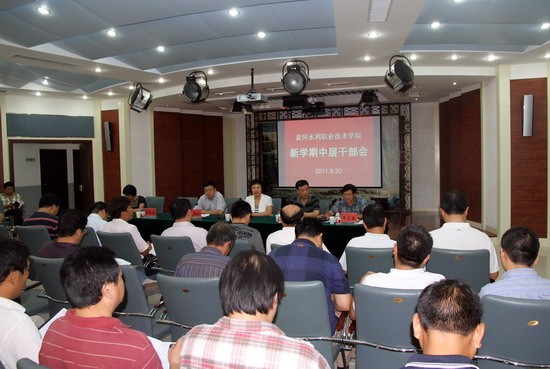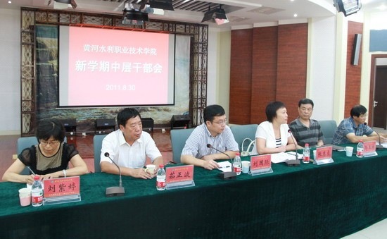 8月30日上午,我院在四号实训馆演播厅召开全体中层干部会议,安排部署新学期各项工作。学院领导张惠贞、刘国际、孙五继、茹正波、王卫东、刘紫婷出席会议。会议由党委副书记、纪委书记王卫东主持。