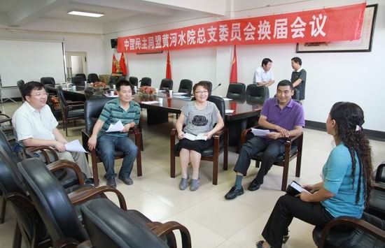 本次换届是黄河水院民盟组织自2005年升格为总支后,按照盟章规定进行的第二次换届选举。会上,民盟黄河水院支委原主委彭明作了总支工作报告,介绍了自2005年以来总支成立后各项工作的情况。会议宣读了民盟开封市委有关换届的批复文件,并按照议程进行了选举,顺利产生了新一届支部委员会,张建忠、侯根然、赵淑萍、朱惠斌当选为总支委员。随后,新一届总支委员会召开了第一次会议,对主委、副主委及总支成员进行了分工;新当选主委张建忠代表新一届总支委作了讲话。作为兄弟总支代表,民盟开封文化艺术职业学院总支黄书林主委对我院民盟总支的顺利换届表示祝贺。