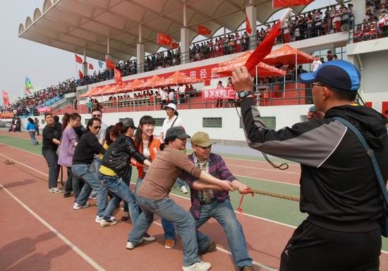 开幕式后,首个教工比赛项目10人60米迎面接力比赛在祥云主体育场举行,来自全院各系部(部门)的200名选手分组进行了角逐。随后进行的是10人拔河比赛项目,场上运动员们激烈拼搏,场下啦啦队员热情如火,充分调动起了全体教职工的运动热情。运动会前,为迎接郑开国际马拉松赛的举行,弘扬全民运动的精神,我院在郑开大道上举办了自行车越野赛,数百名教职工积极参加了比赛。(供稿:院广播站 张卓、费利君、杨宁瑞)