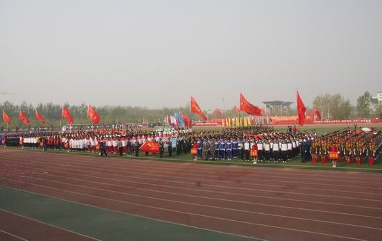 阳光和煦,春意盎然; 彩旗飘扬,人声鼎沸。4月14日上午,我院2011年春季田径运动会在祥云体育场隆重开幕。院领导张惠贞、刘国际、孙五继、茹正波、王卫东、刘紫婷出席开幕式。运动会主席团成员、各系部处主要领导在主席台就座,全院部分师生员工参加了开幕式。开幕式由院党政办主任杨士恒主持。
