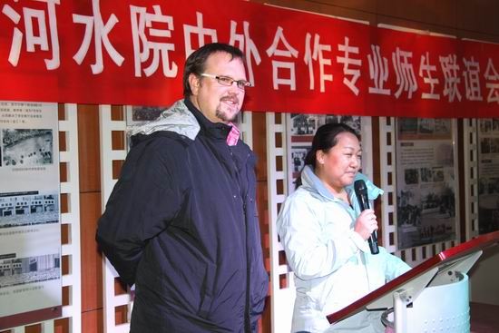 联谊会在两位澳方教师的主持下拉开序幕。澳方教师与我院合作专业的学生共同进行的互动游戏,妙趣横生,师生其乐融融。刘紫婷副院长一曲高亢激昂的演唱,把联谊会推向了高潮。中澳师生在愉快、欢乐的气氛下,加深了解、增进感情的同时,使同学们体会到了团队合作精神,也使中方教师学到了灵活多样的教学方法和教学手段。