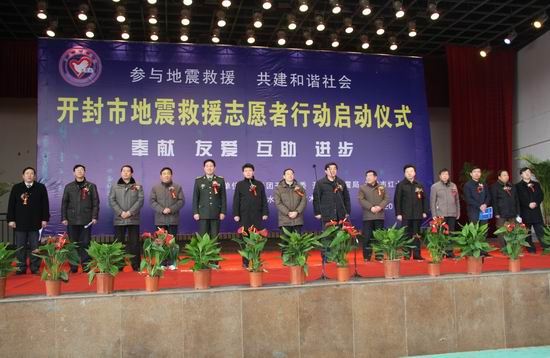 据悉,开封市被中国地震局列入有可能发生破坏性地震值得注意的地区,被河南省地震局确定为我省8个重点地震监视城市之一。为提高全民防震减灾素质,提升地震灾害救助能力,共青团开封市委、市地震局、市红十字会依托黄河水利职业技术学院组建了5支志愿者服务队,依托各县区组建了10支志愿者服务队。服务队将负担起全市防震救灾知识宣传、地震应急救援等应急救援志愿服务任务。