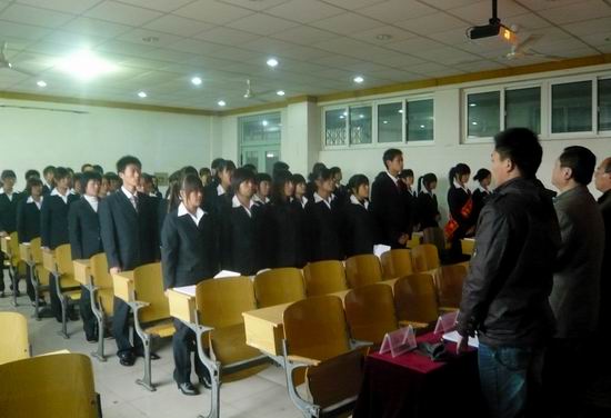 开班典礼上,学生代表王鹏飞首先发言,谈了自己对党、对党校的认识,并表示要继续努力做一名优秀团员,不辜负学院的期望。随后,2010级辅导员杨利国和王斌分别宣读了本期培训班学员名单和本期培训班的教学计划安排。
