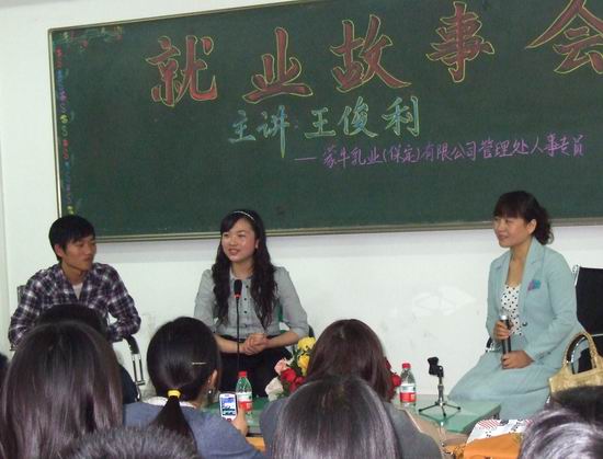 10月16日晚,招生就业中心在教学楼7207室召开就业故事会,邀请我院2010届食品加工技术专业毕业生,现任蒙牛乳业集团(保定)有限公司人力资源部人事专员王俊利和同学们交流就业体会。就业办主任曾宝亭和各系学生代表参加了会议。